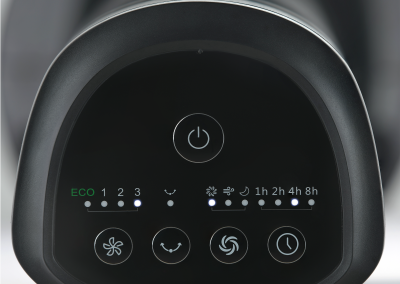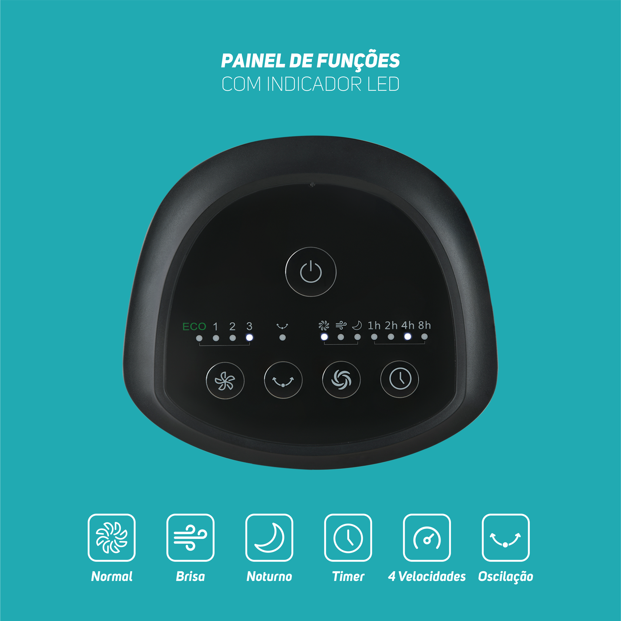 - Modo ECO: Oscila automaticamente entre as velocidades baixa e média, economizando energia e mantendo o ambiente fresco e agradável.