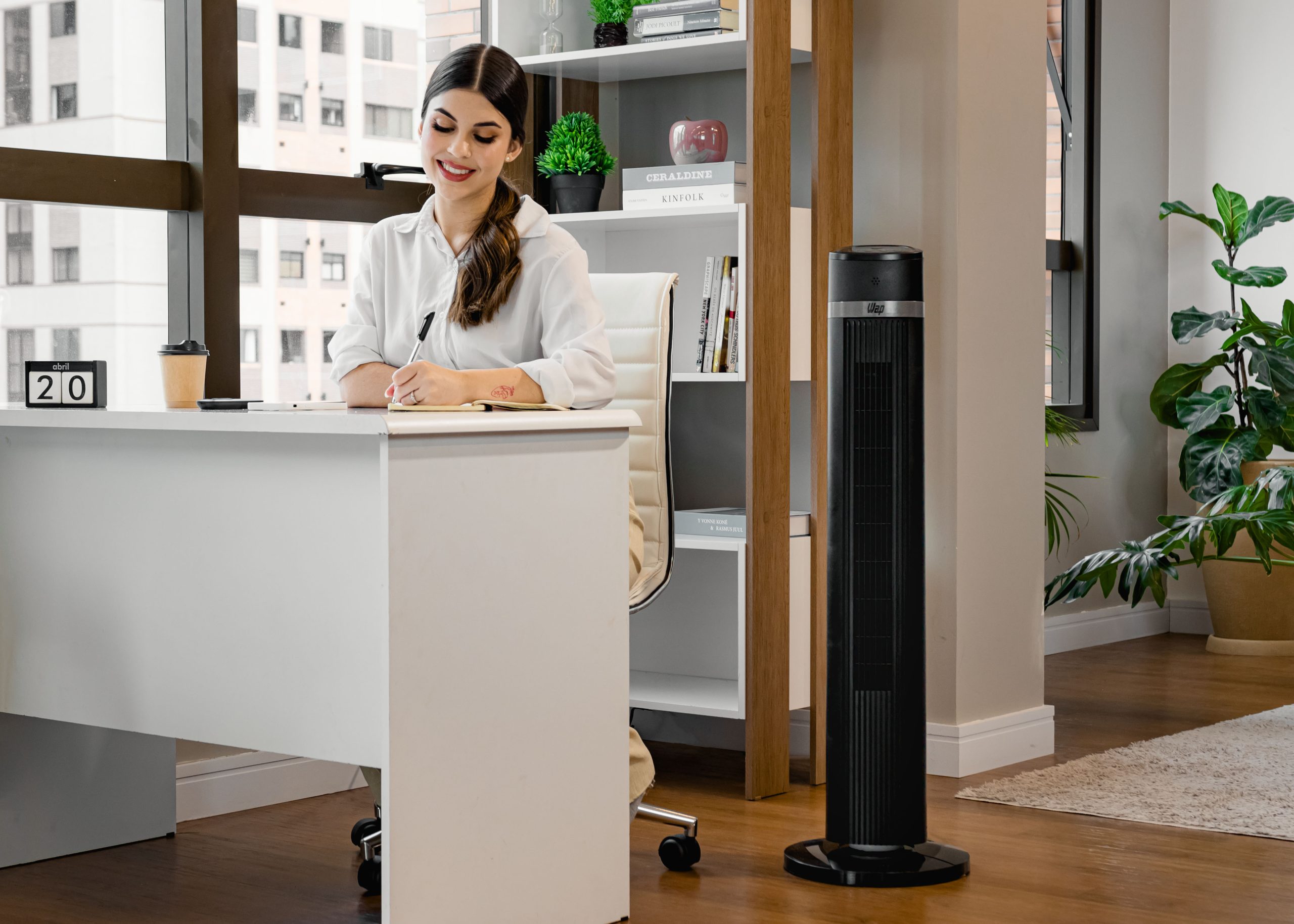 - Design moderno e compacto. Ventilador Vertical para diversos ambientes, oferecendo beleza, vento, climatização e conforto.