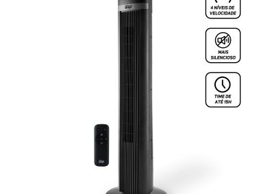 - Ventilador Torre Silencioso Oscilante com Controle Remoto 4 Velocidades e Desligamento Automático WAP AIR SILENCE 220V