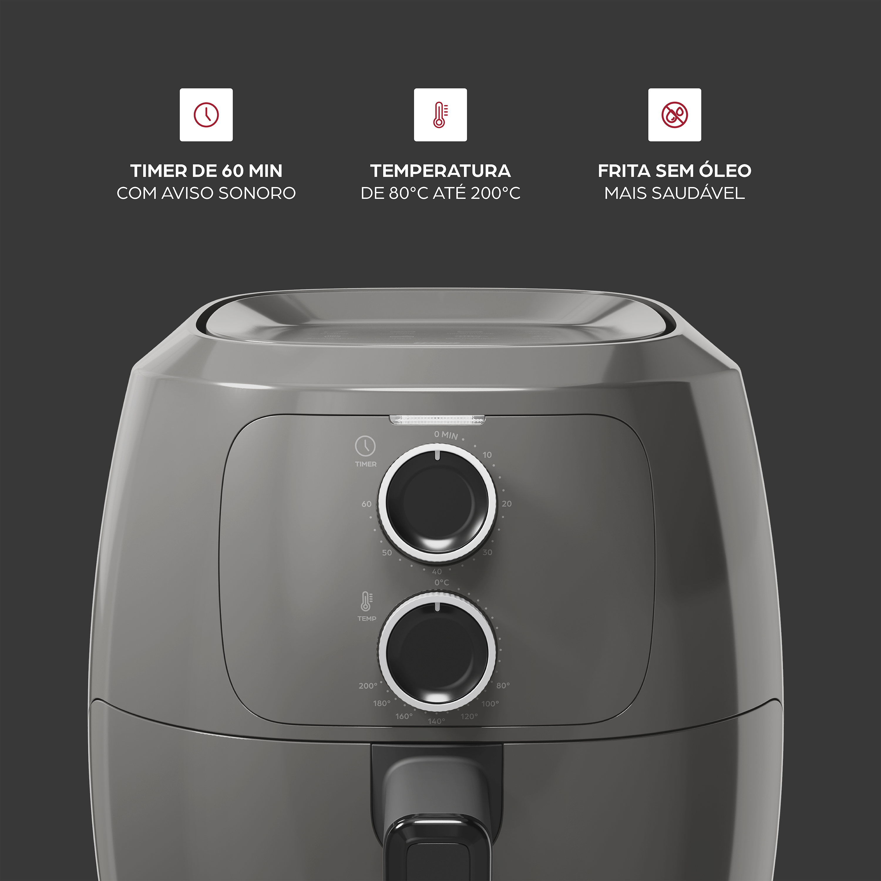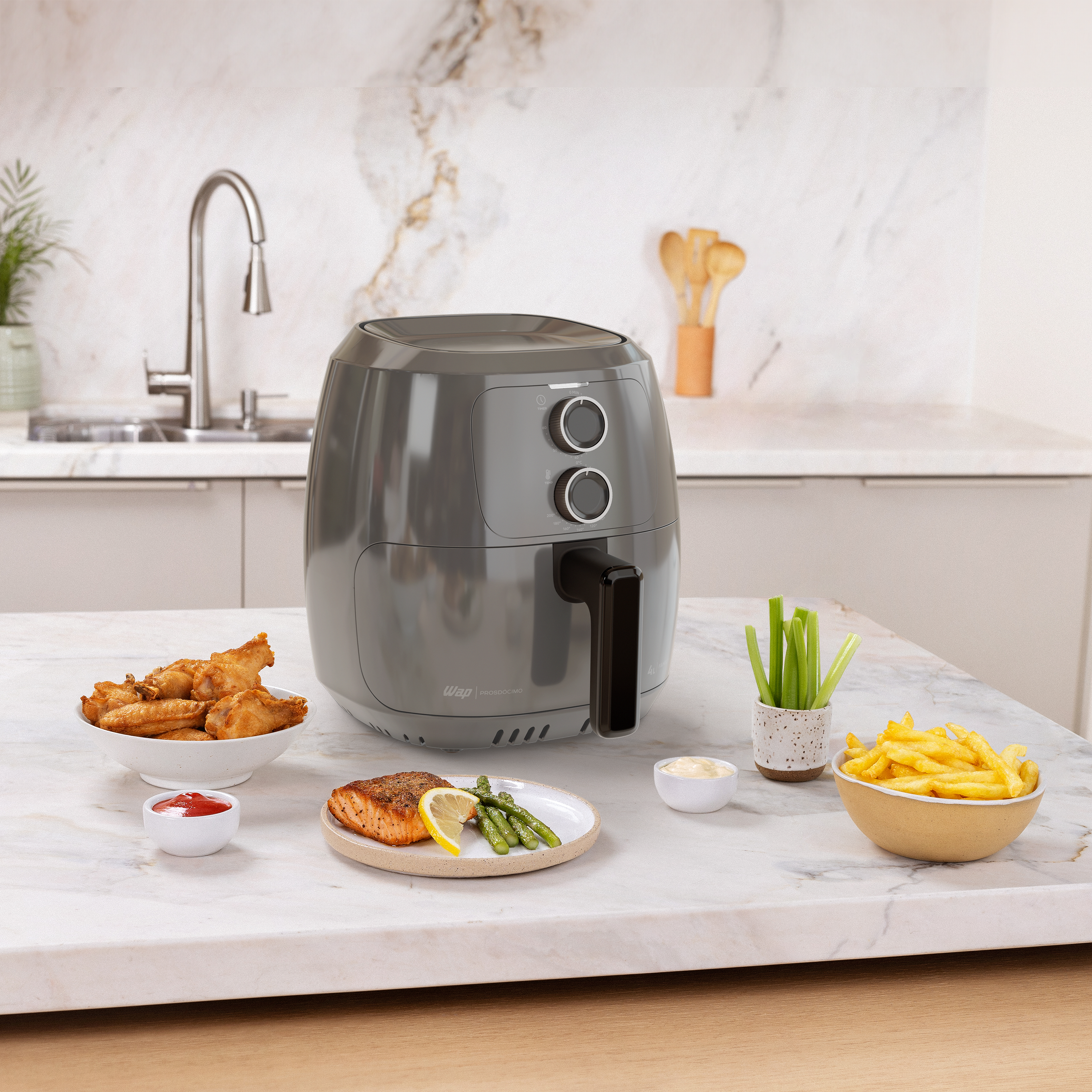 - Fritadeira Elétrica sem Óleo WAP Air Fryer Cinza 4L com Potência de 1500W Timer de Até 60min Revestimento Antiaderente 220v