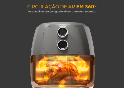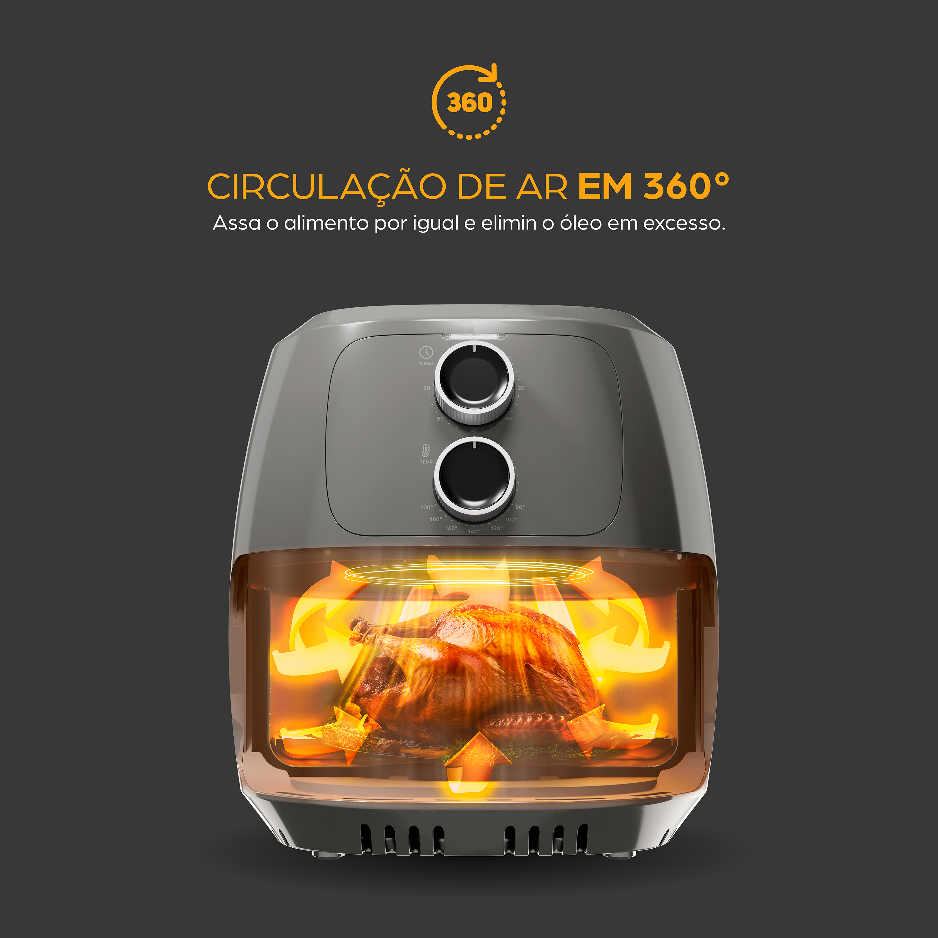 - Hora de redefinir o conceito de cozinha saudável! Circulação de ar em 360° envolve os alimentos com ar quente de todos os ângulos para receitas irresistíveis.