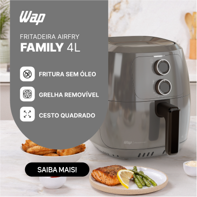 - Projetada para simplificar a rotina na cozinha, a grelha removível da Fritadeira Elétrica WAP Family torna a limpeza rápida, simples e eficaz.