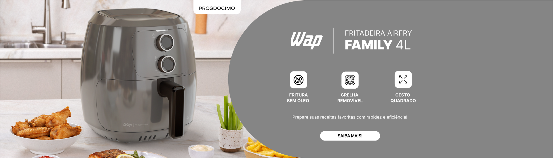 | DESCRIÇÃO 127V: | WAP AIRFRY FAMILY CINZA PROSDÓCIMO 4L 127V |