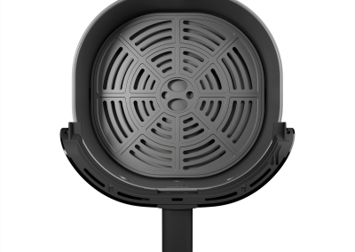 O design quadrado do cesto da air fryer preta tem lugar e estilo de sobra para suas receitas. O espaço extra garante que a cocção de cada pedaço seja uniforme e rápida. Além disso, a grelha removível permite uma circulação eficiente do ar para realçar o sabor das refeições.