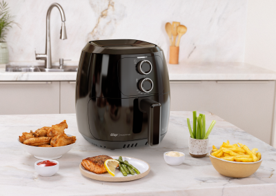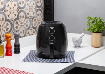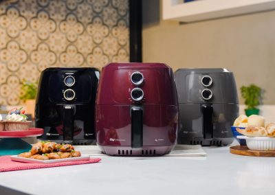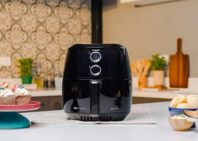 - Dê um toque de cor e estilo à sua cozinha com a air fryer preta WAP, que não só oferece funcionalidade e eficiência, mas também adiciona charme ao ambiente.
