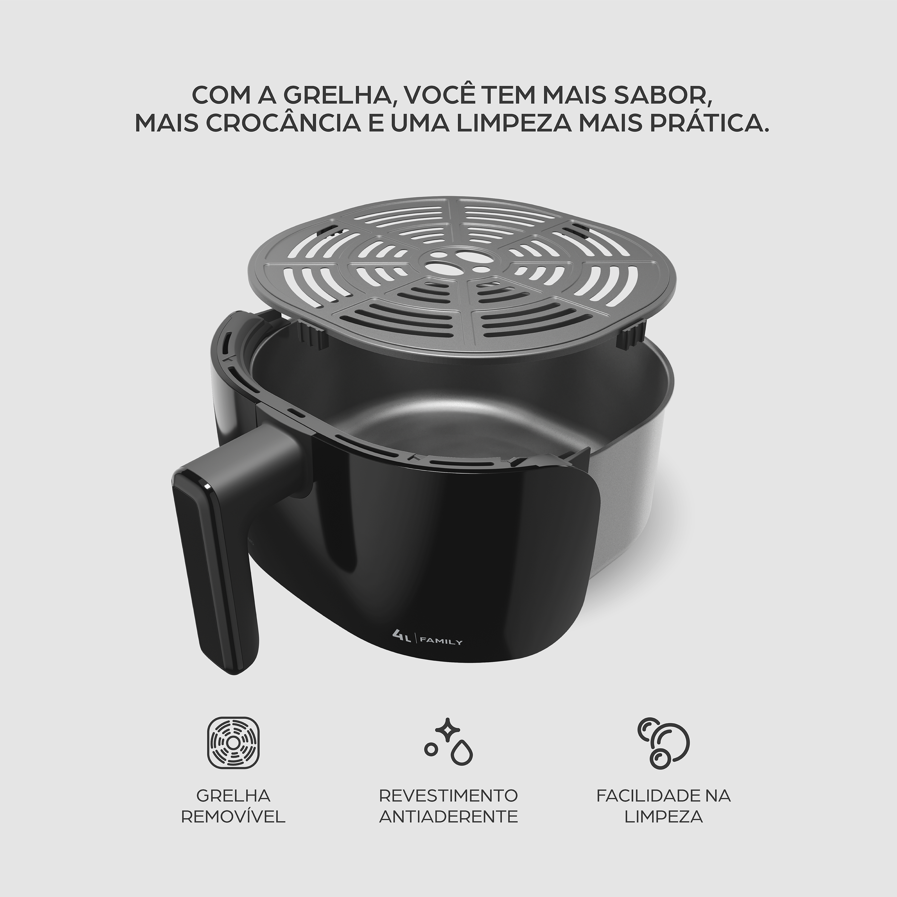 - Projetada para simplificar a rotina na cozinha, a grelha removível da Fritadeira Elétrica WAP Family torna a limpeza rápida, simples e eficaz.