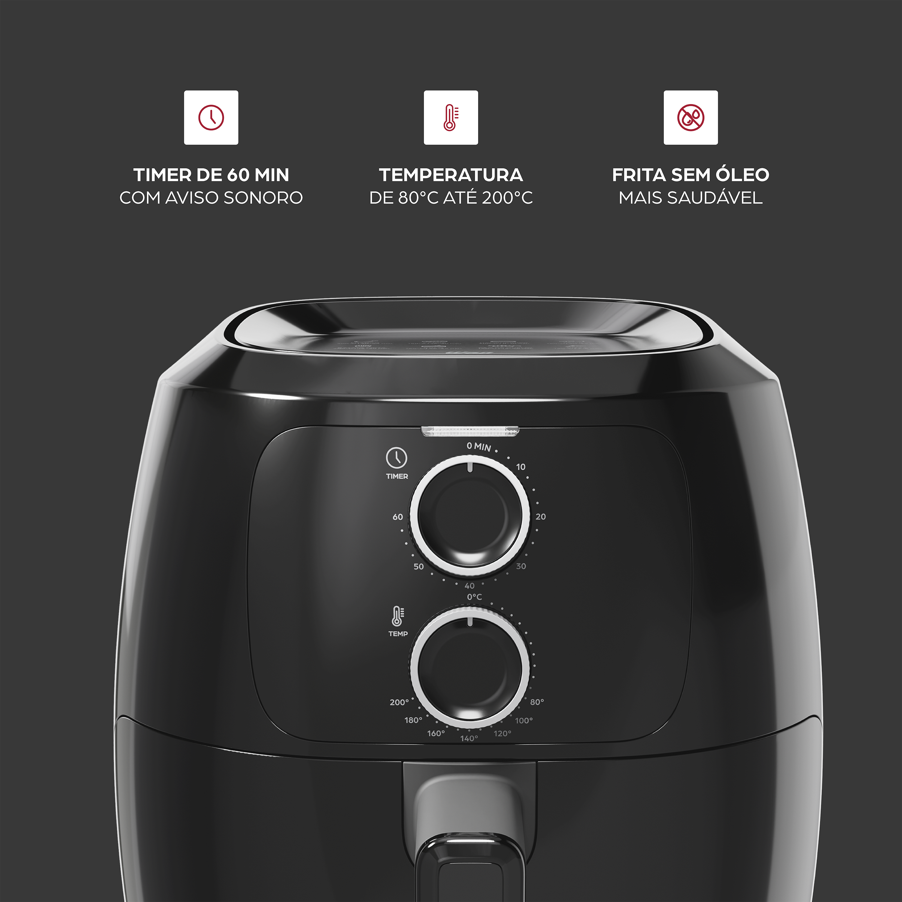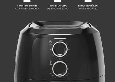 - Ajuste a temperatura de acordo com a sua receita! Com uma amplitude que varia de 80°C até 200°C, a fritadeira elétrica é a sua parceira em todas as aventuras culinárias.
