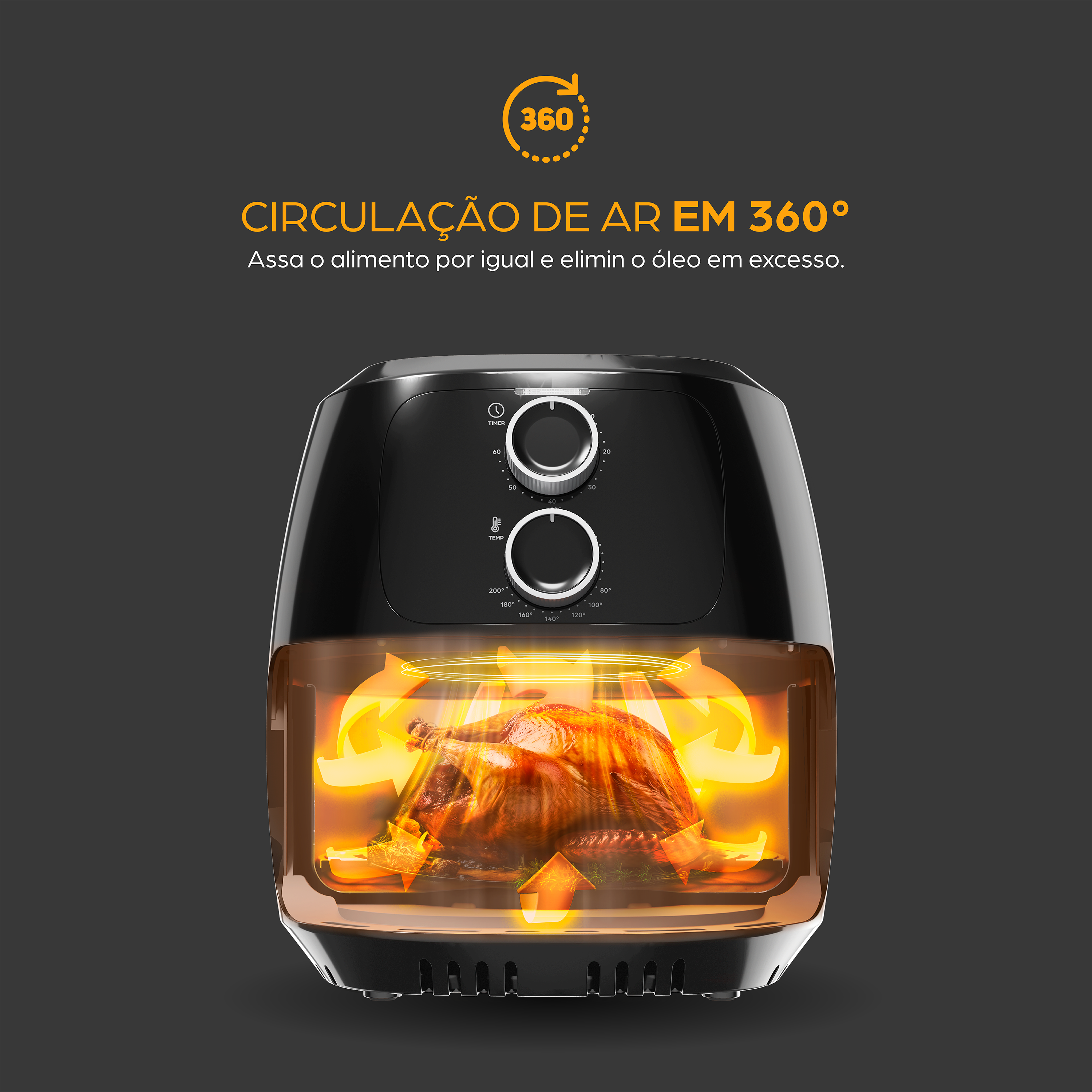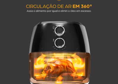 - Hora de redefinir o conceito de cozinha saudável! Circulação de ar em 360° envolve os alimentos com ar quente de todos os ângulos para receitas irresistíveis.
