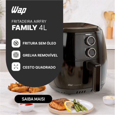Liberte sua imaginação e crie receitas incríveis para toda a família. A Fritadeira Elétrica WAP Family 4L é a escolha perfeita para refeições saudáveis, práticas e cheias de sabor.