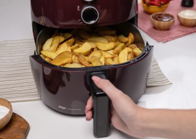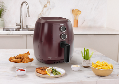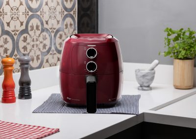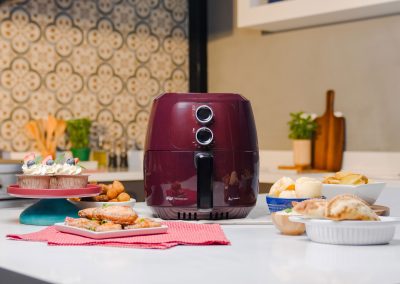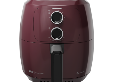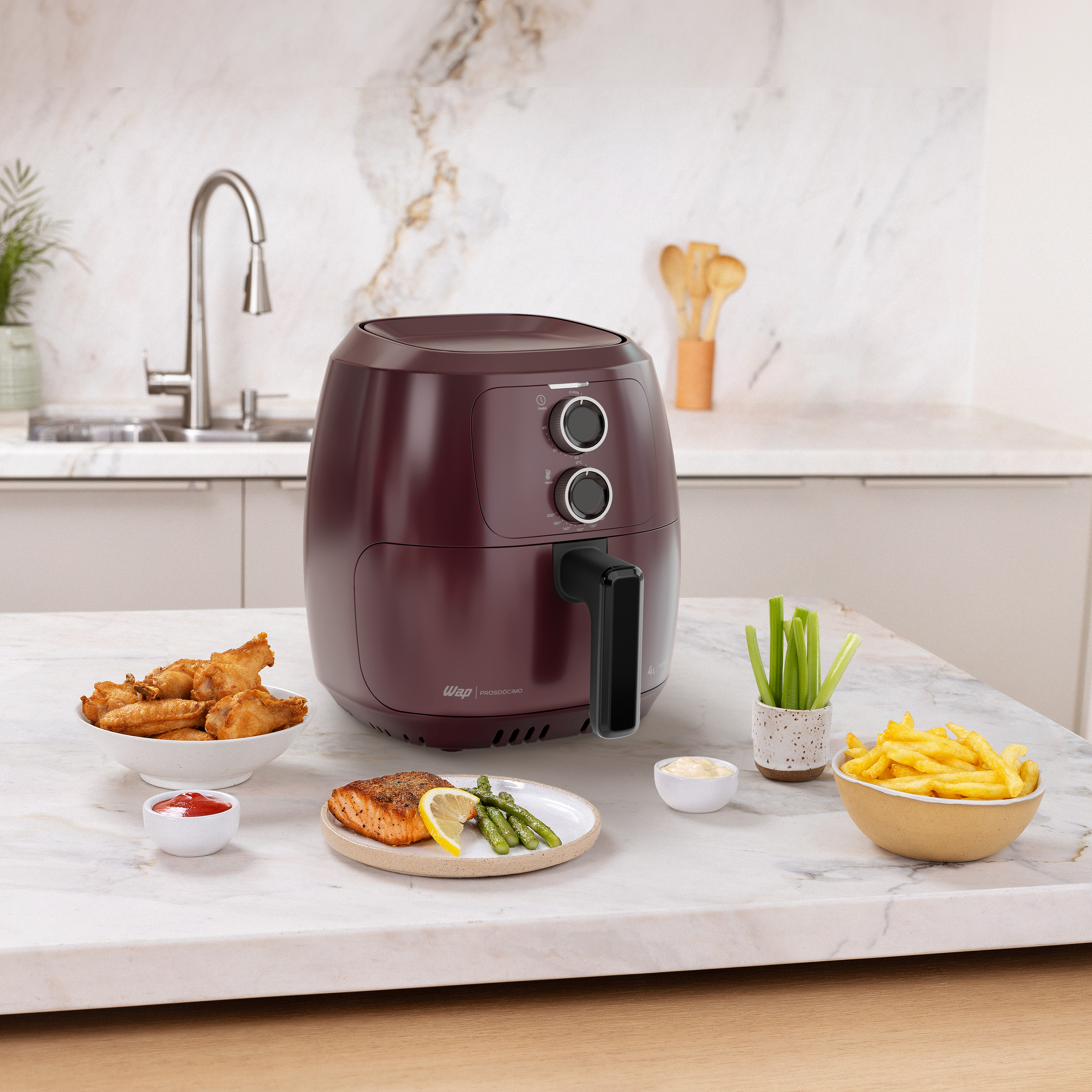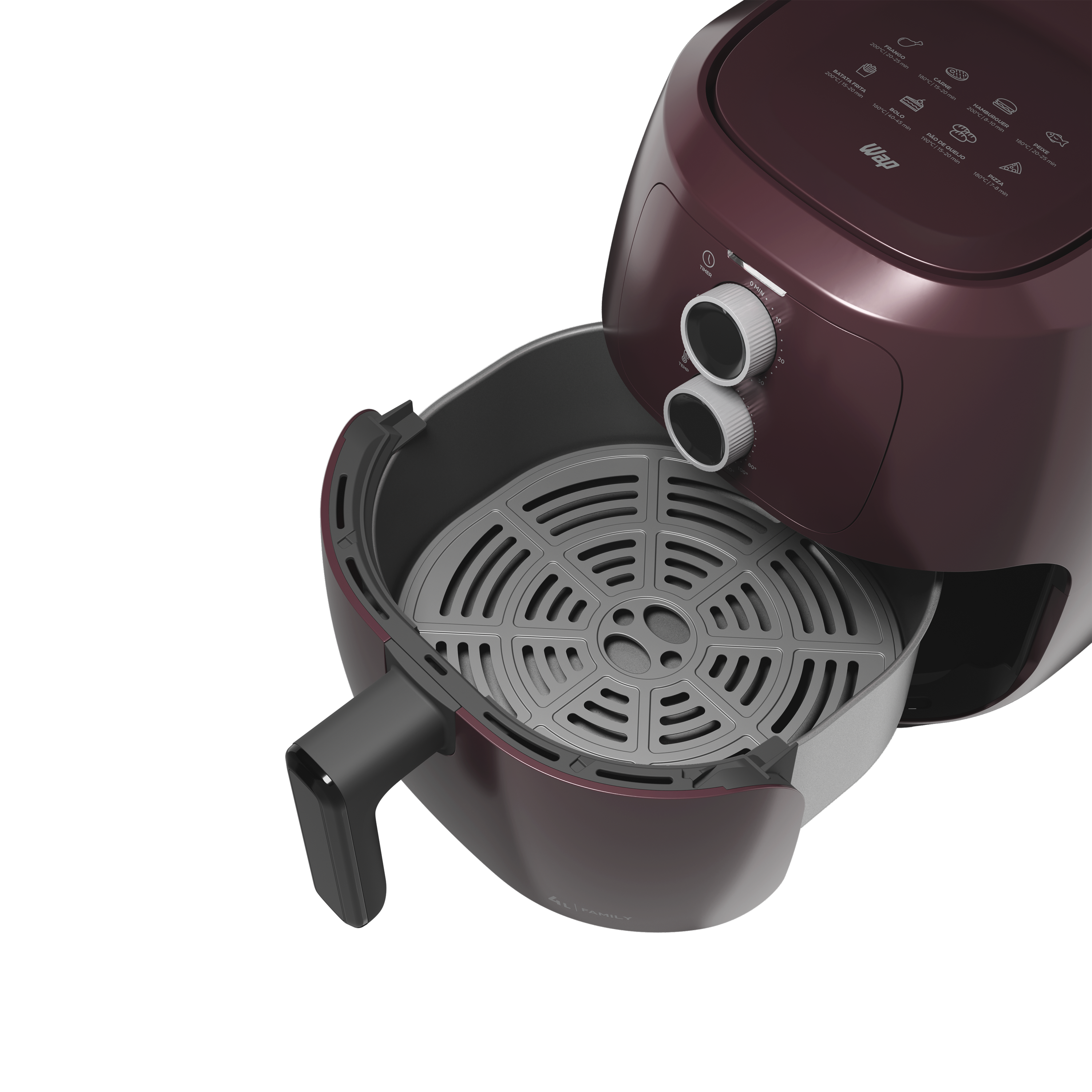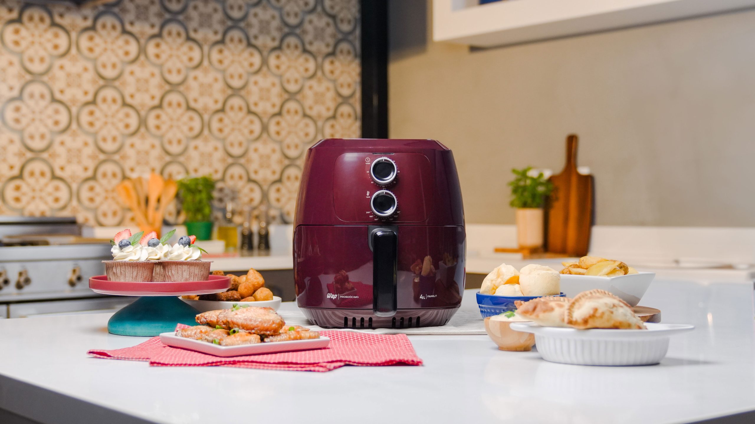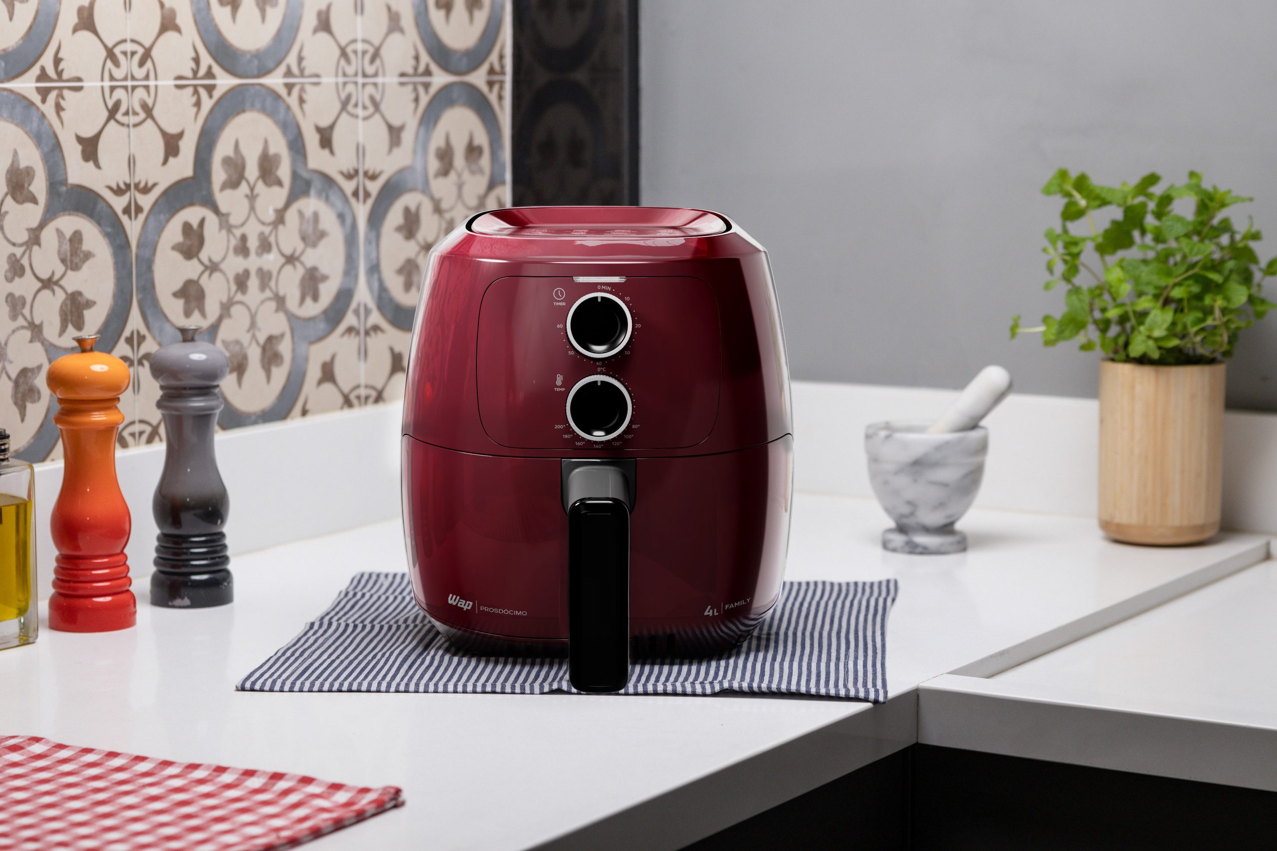 - Dê um toque de cor e estilo à sua cozinha com a air fryer vermelha WAP, que não só oferece funcionalidade e eficiência, mas também adiciona charme ao ambiente.