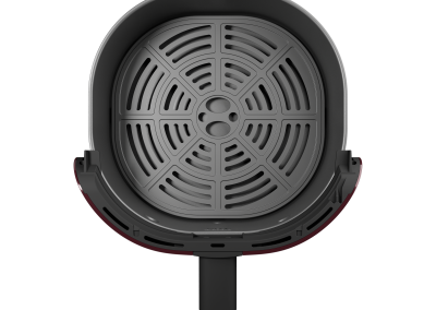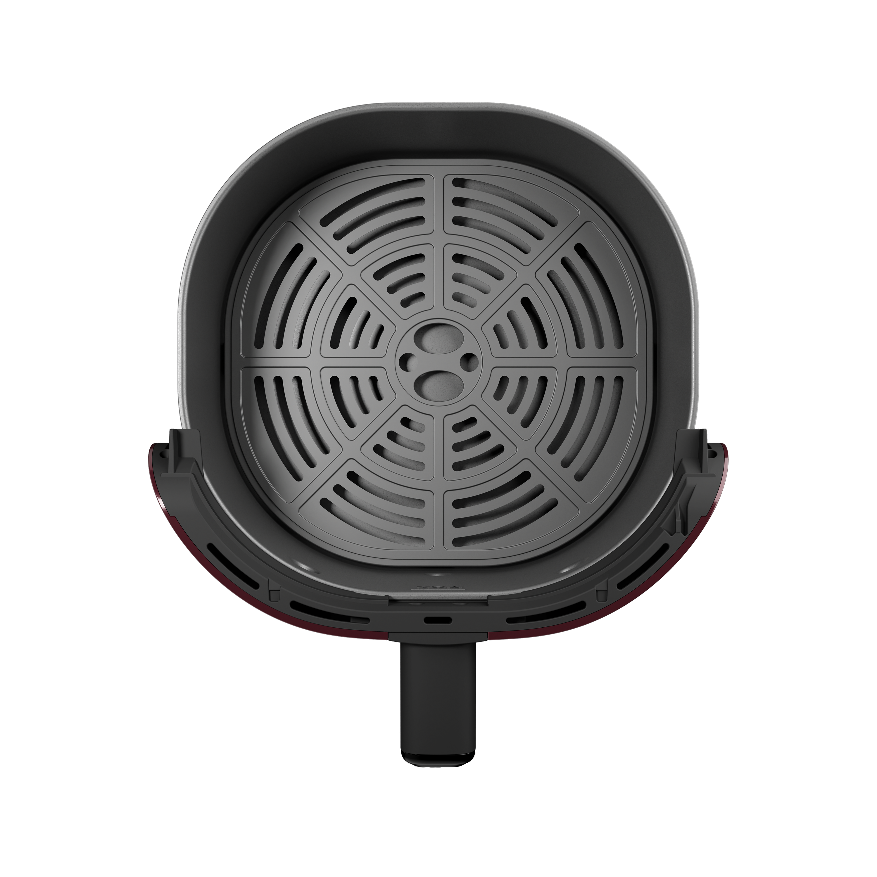 O design quadrado do cesto da air fryer vermelha tem lugar e estilo de sobra para suas receitas. O espaço extra garante que a cocção de cada pedaço seja uniforme e rápida. Além disso, a grelha removível permite uma circulação eficiente do ar para realçar o sabor das refeições.