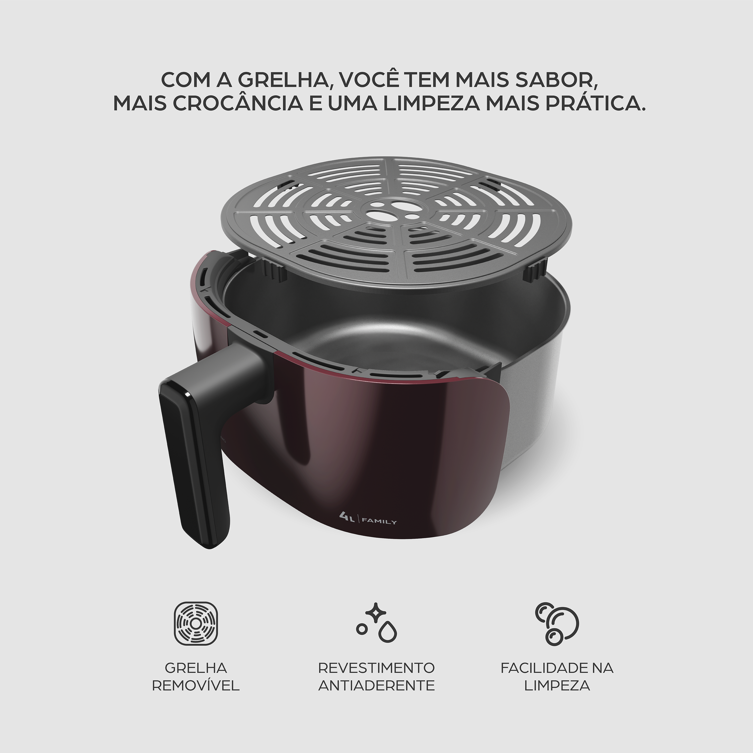 - Projetada para simplificar a rotina na cozinha, a grelha removível da Fritadeira Elétrica WAP Family torna a limpeza rápida, simples e eficaz.