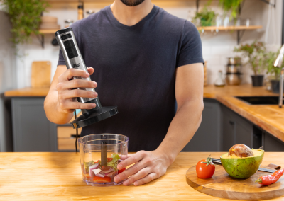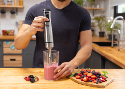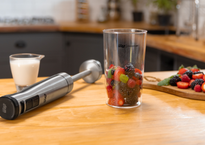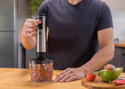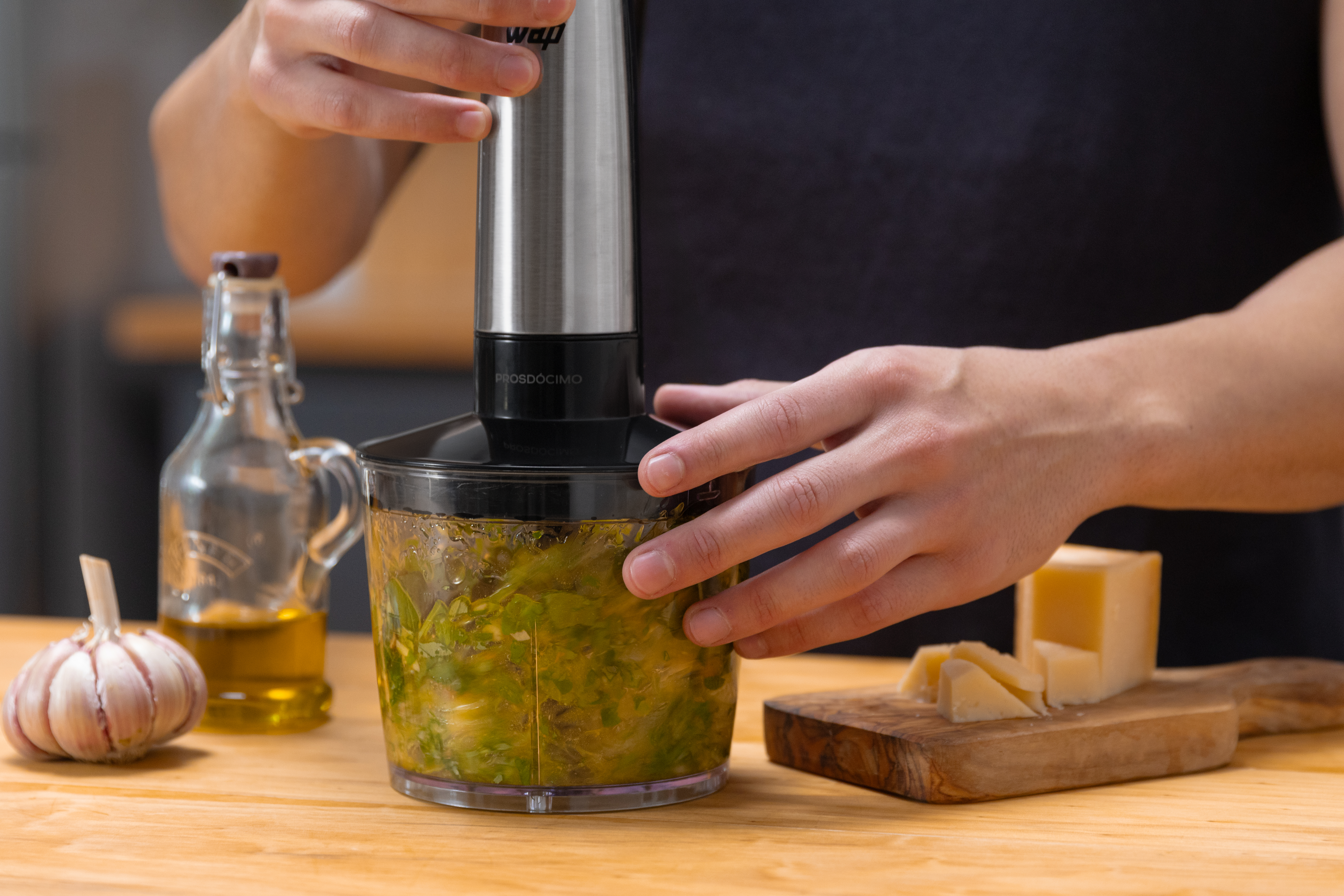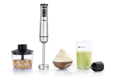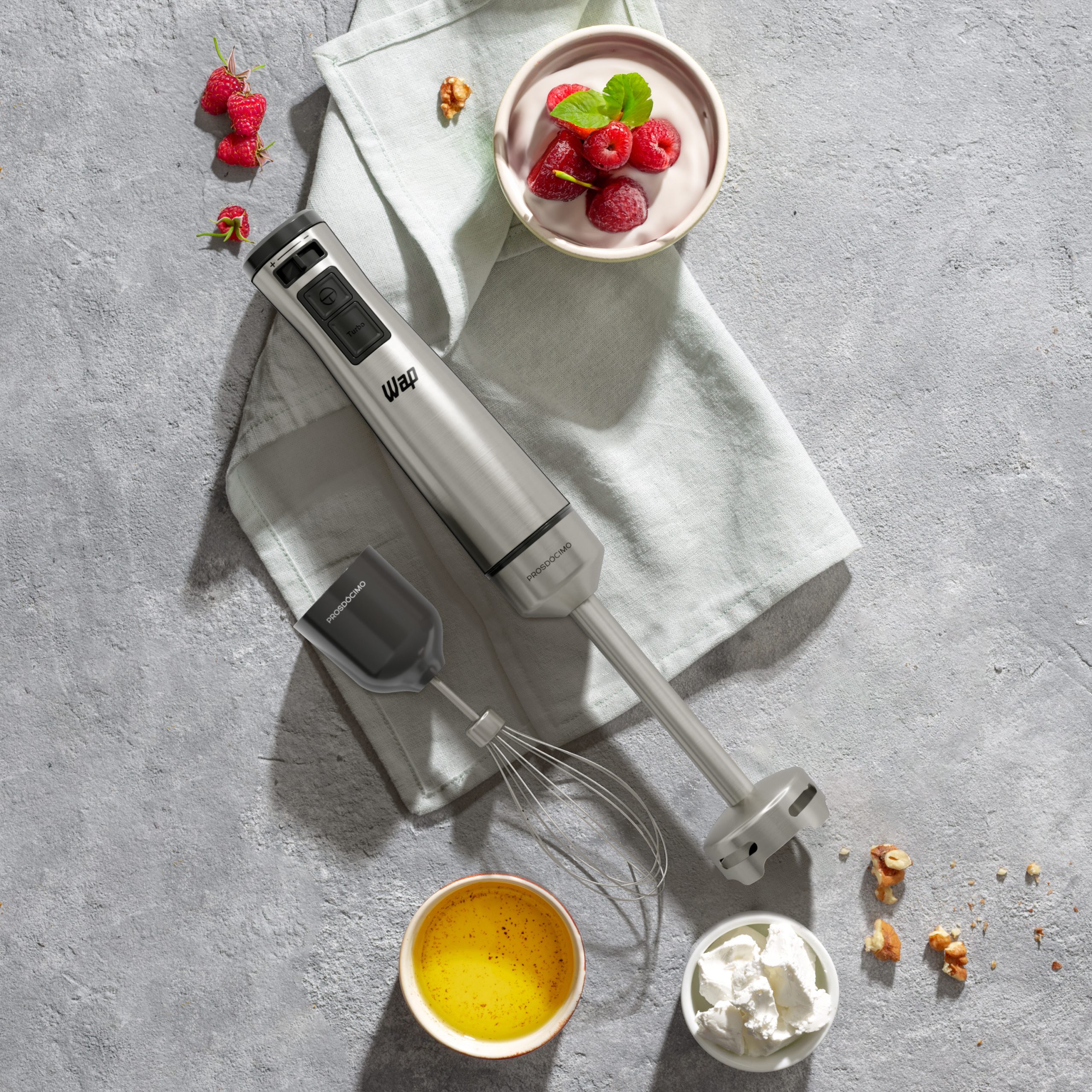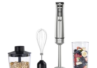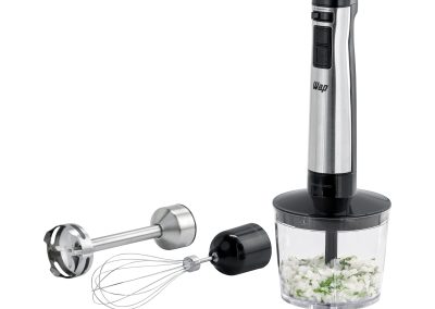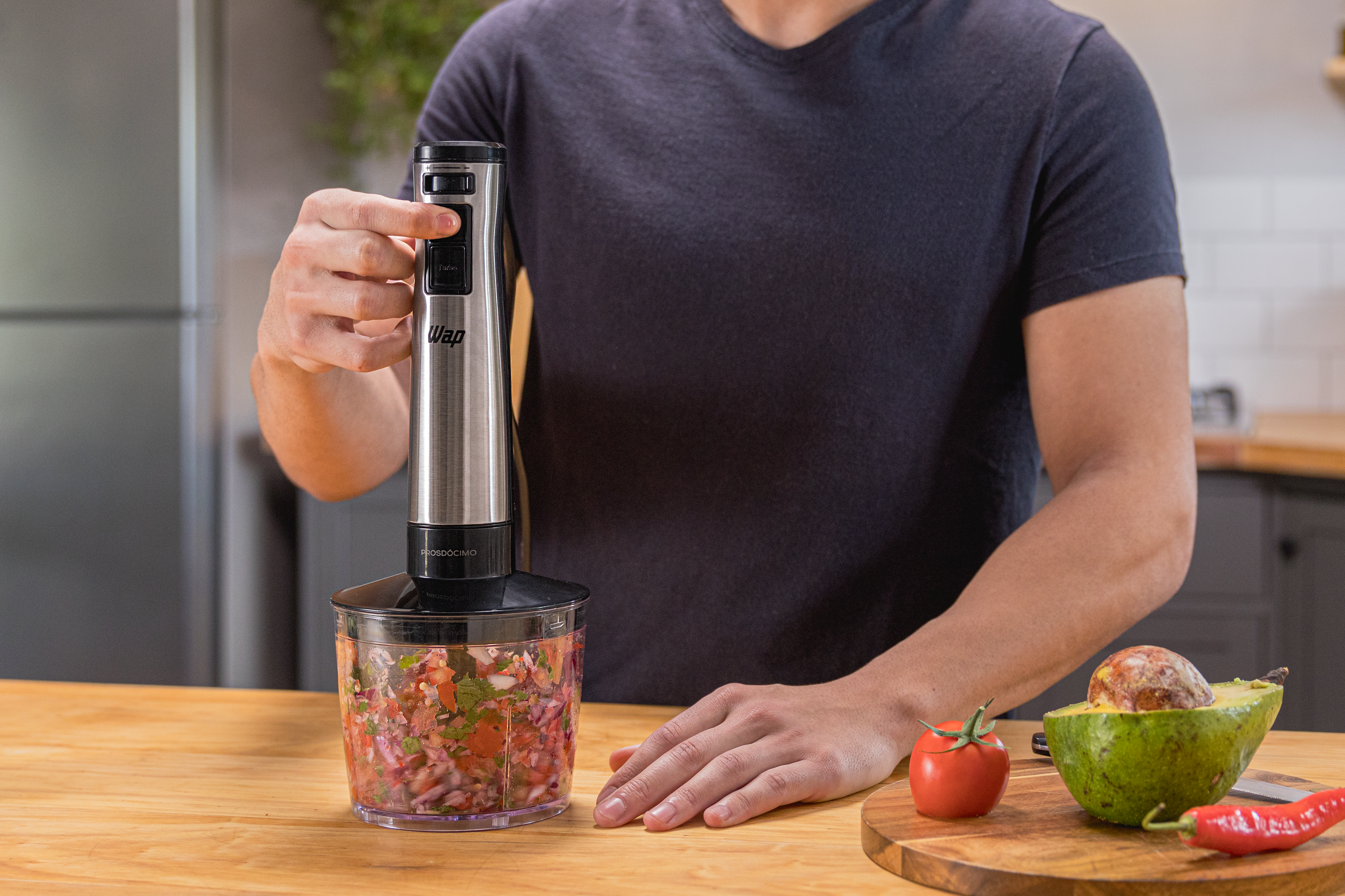 Seja para receitas rápidas do dia a dia ou pratos dignos de chef, o WAP MIXER 3 EM 1 INOX PROSDÓCIMO WM1 é o aliado ideal para explorar sua criatividade culinária. Equipado com um batedor de claras, um miniprocessador de 500 ml e um copo de 700 ml com tampa, ele completa sua experiência na cozinha.