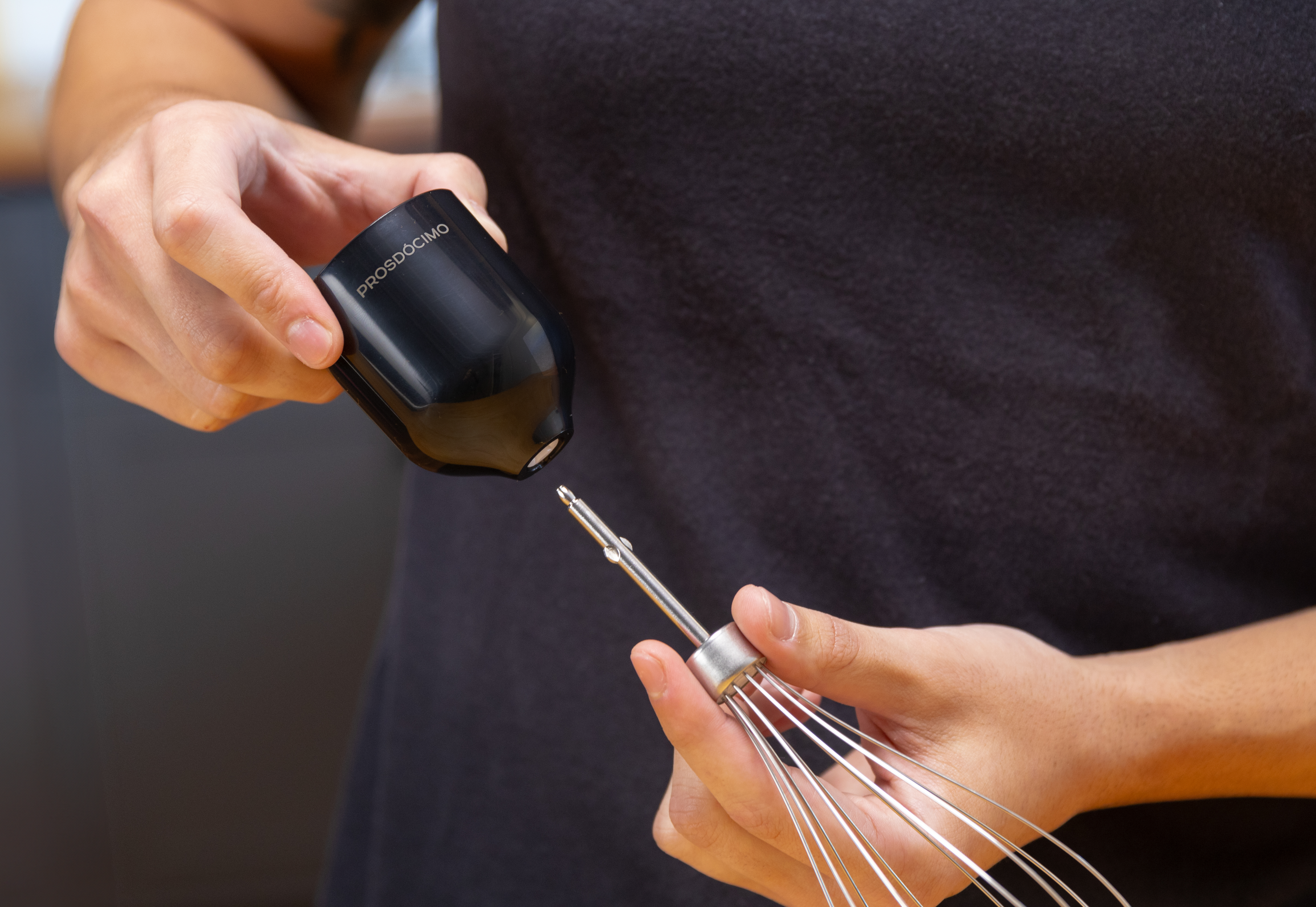 - A haste e as quatro lâminas em aço inox oferecem mais durabilidade e resistência para preparar alimentos.