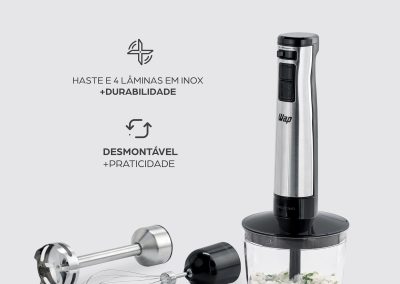 - Mixer Elétrico Com Processador Wap Inox Prosdócimo WM1 Turbo 3 em 1 Com Batedor de Claras 4 Laminas Miniprocessador 127V