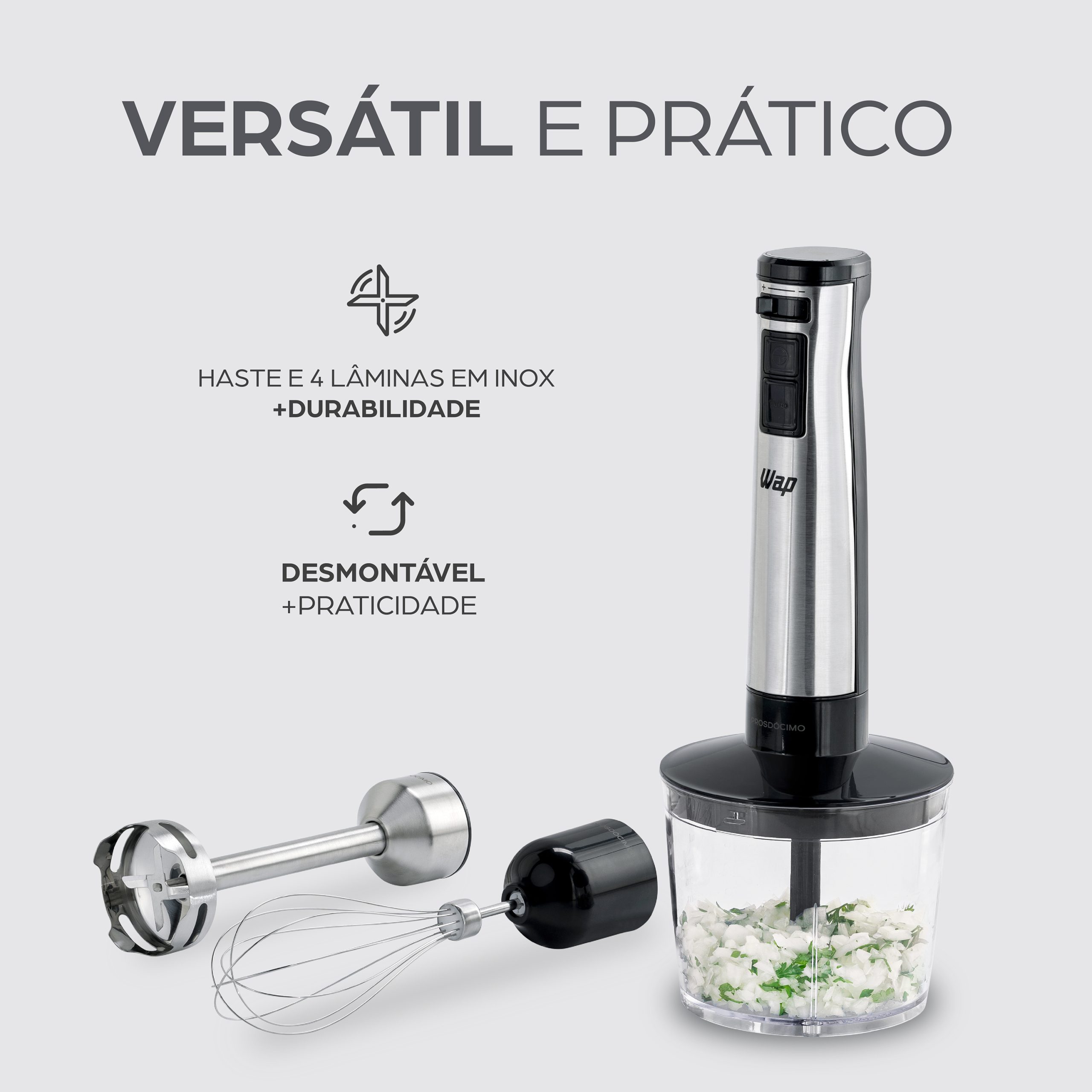 - Mixer 3 em 1 Wap Inox Prosdócimo WM1 Processador De Alimentos Elétrico Portátil Turbo Desmontável Miniprocessador 220V