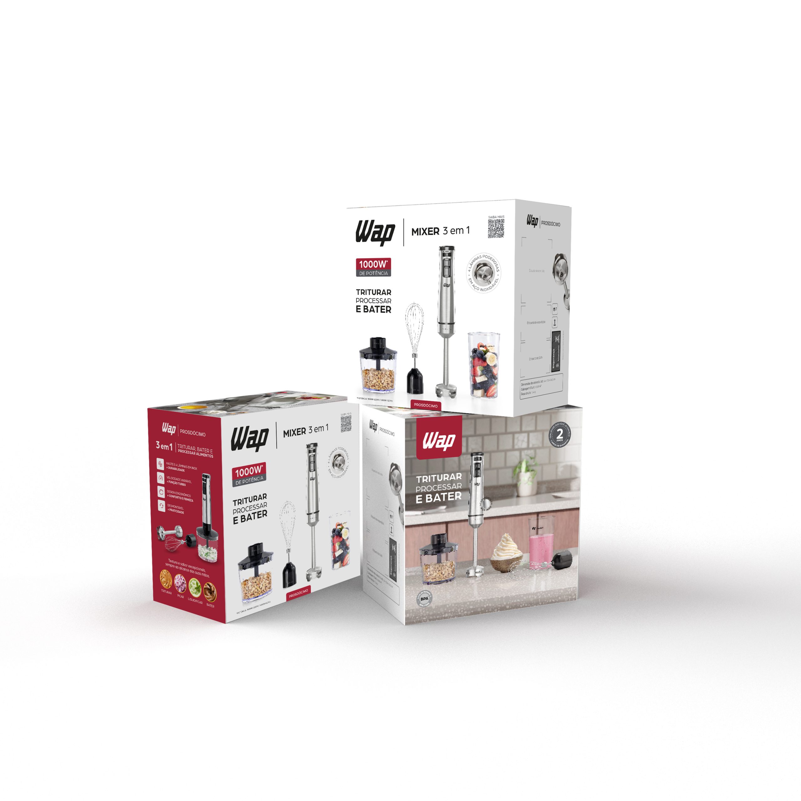 - Mixer Elétrico Com Processador Wap Inox Prosdócimo WM1 Turbo 3 em 1 Com Batedor de Claras 4 Laminas Miniprocessador 220V