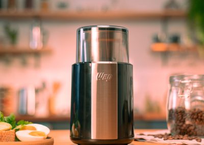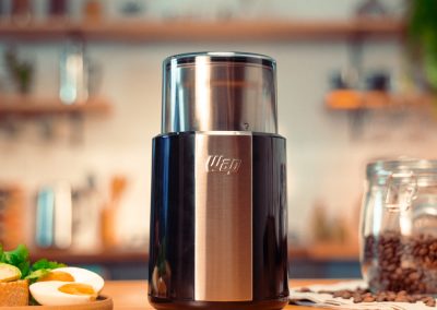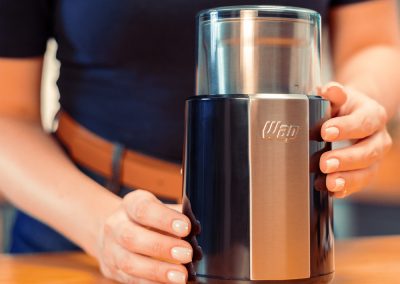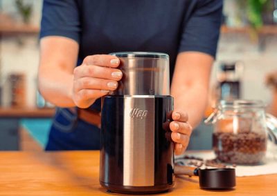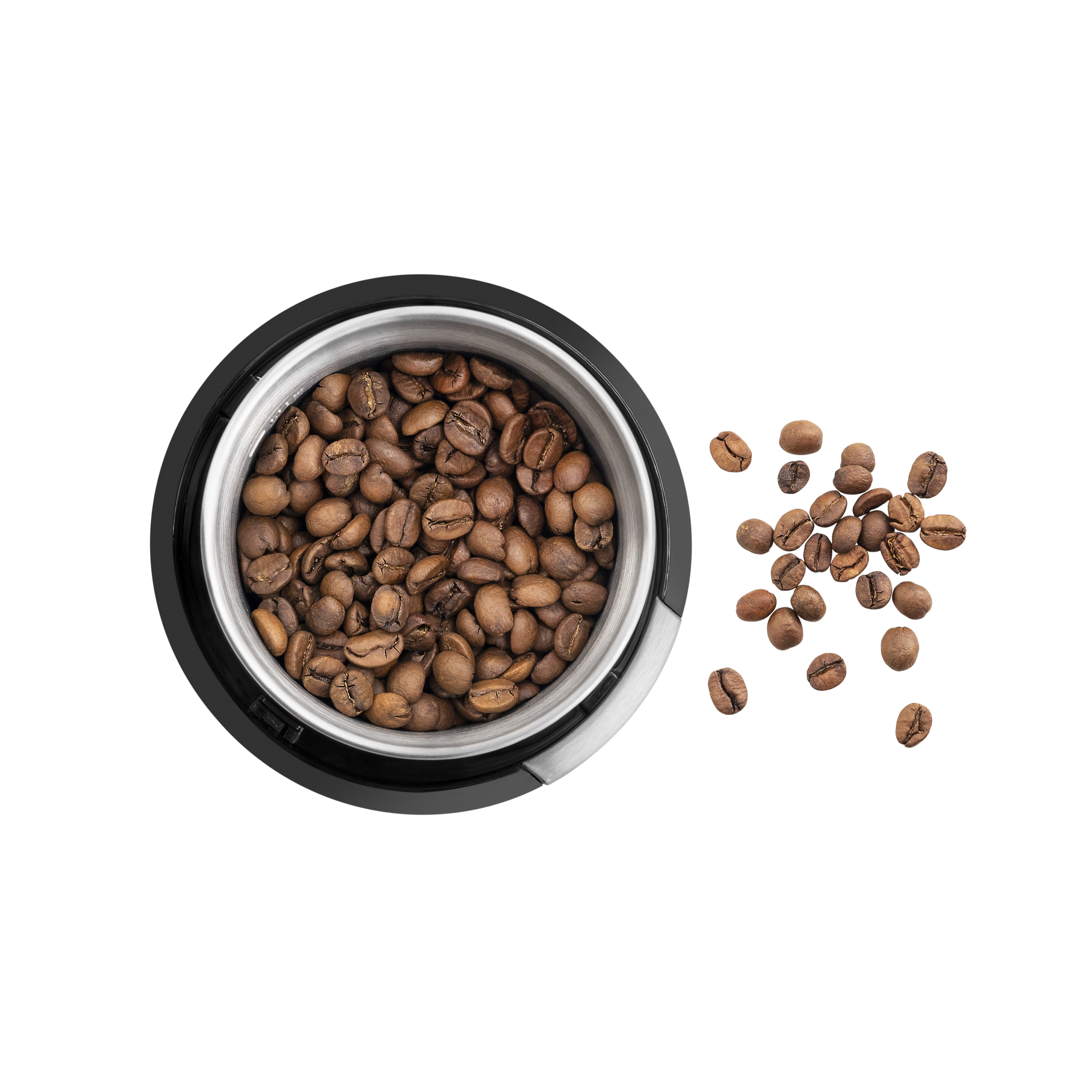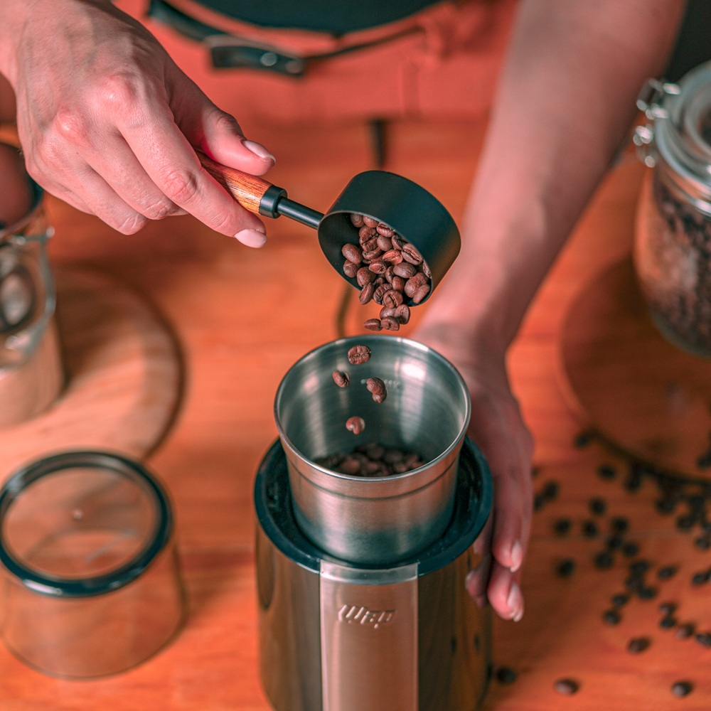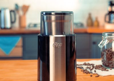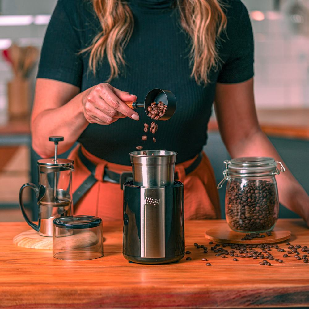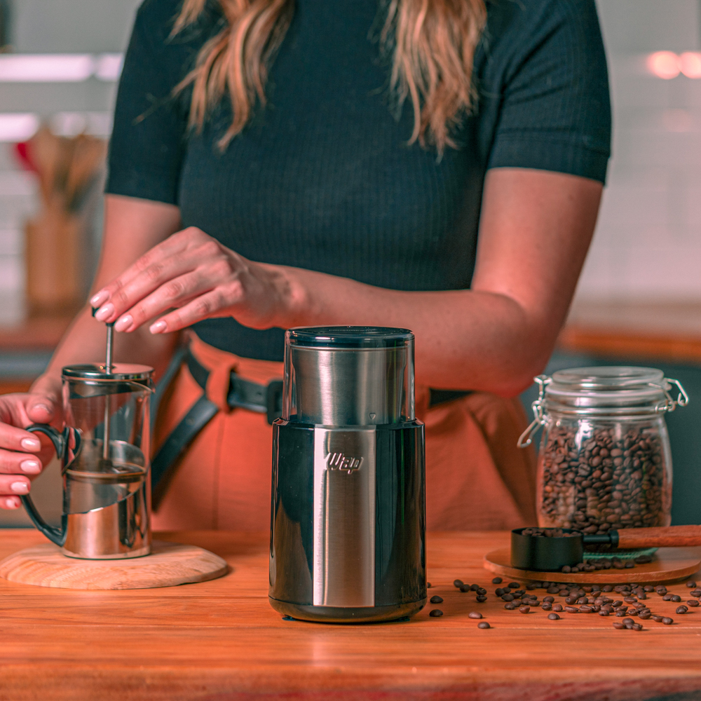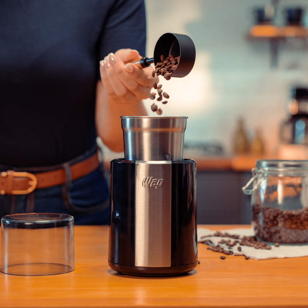 Essencial para um café de alta qualidade, as duas lâminas de aço inoxidável são resistentes e promovem uma moagem consistente e uniforme dos grãos. O Moedor de Café Aroma WMC200 é prático de usar, com acionamento de um toque.