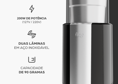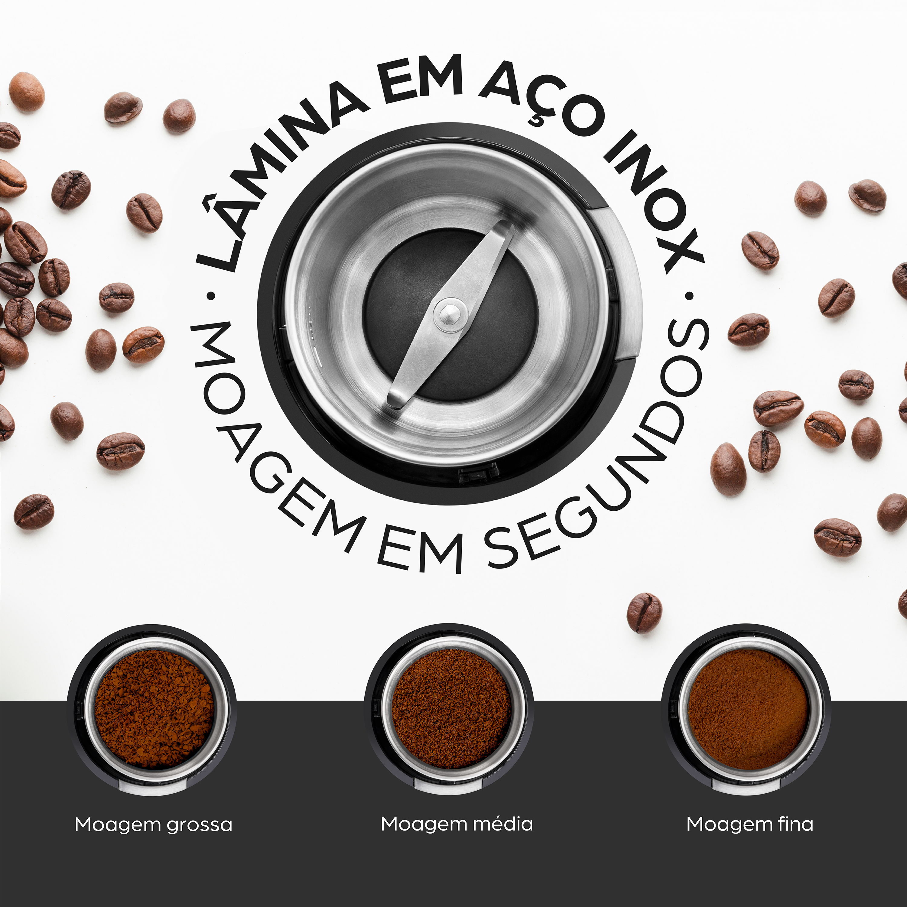 - As suas lâminas em aço inox garantem durabilidade e eficiência na moagem dos grãos.