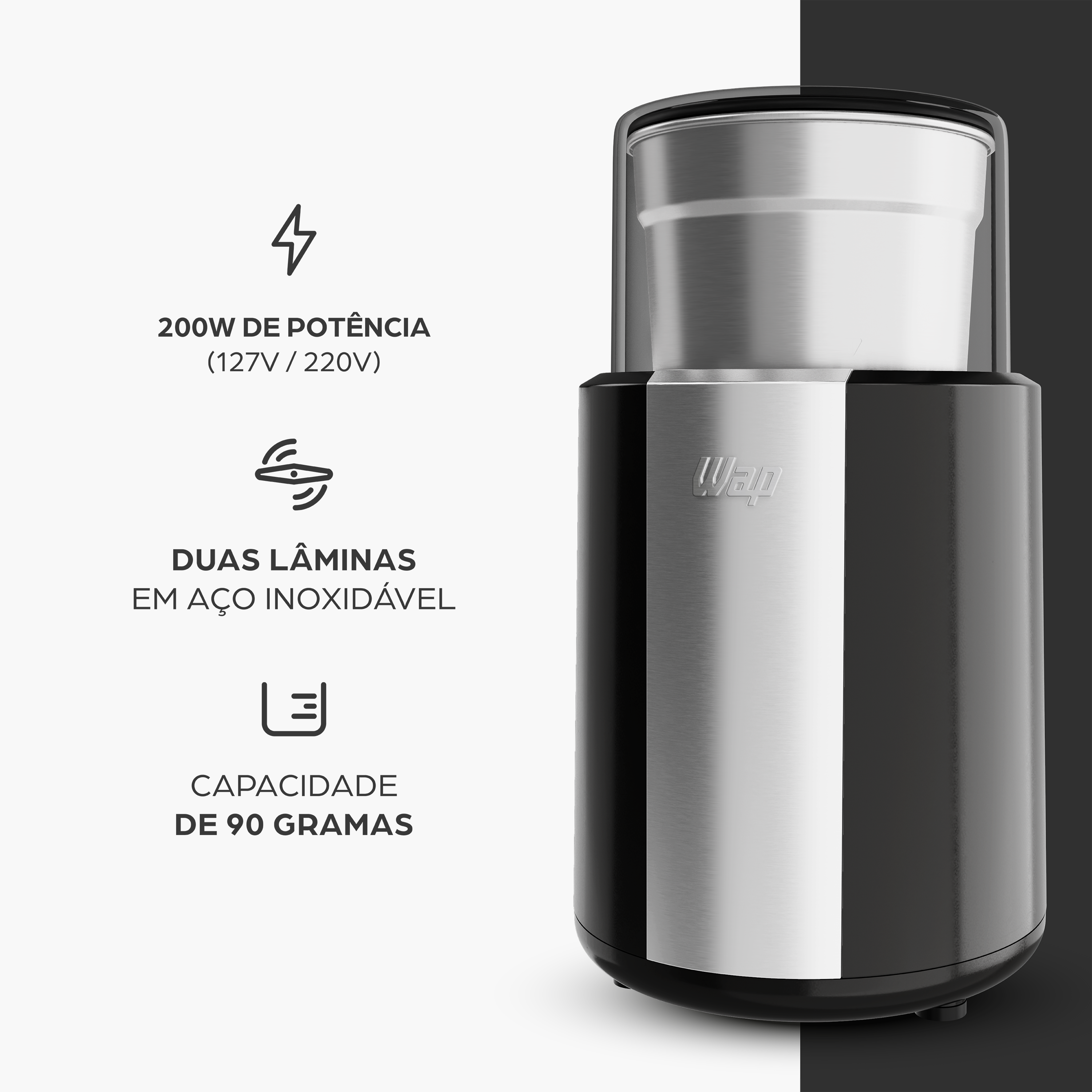 WAP Moedor de Café WAP AROMA WMC200 Com Duas Lâminas em Inox, 200W de Potência e Capacidade de 90g 127V