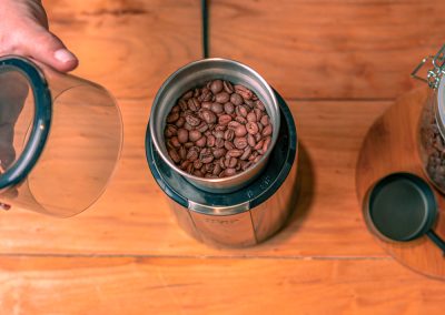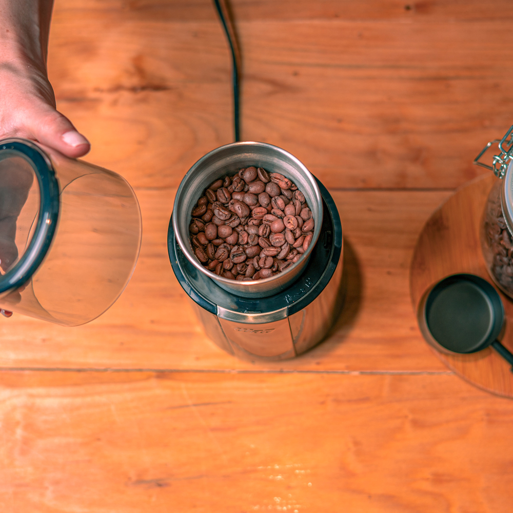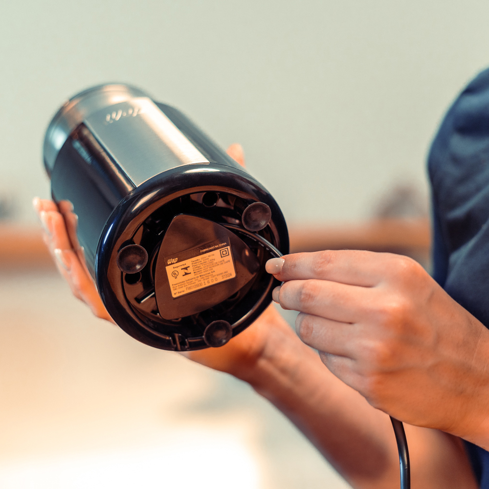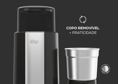 Para tornar a rotina de preparo mais prática, o copo removível facilita o manuseio dos grãos moídos e a transferência para outros recipientes. Além disso, ele simplifica a higienização, garantindo que o moedor esteja sempre limpo e pronto para o uso.
