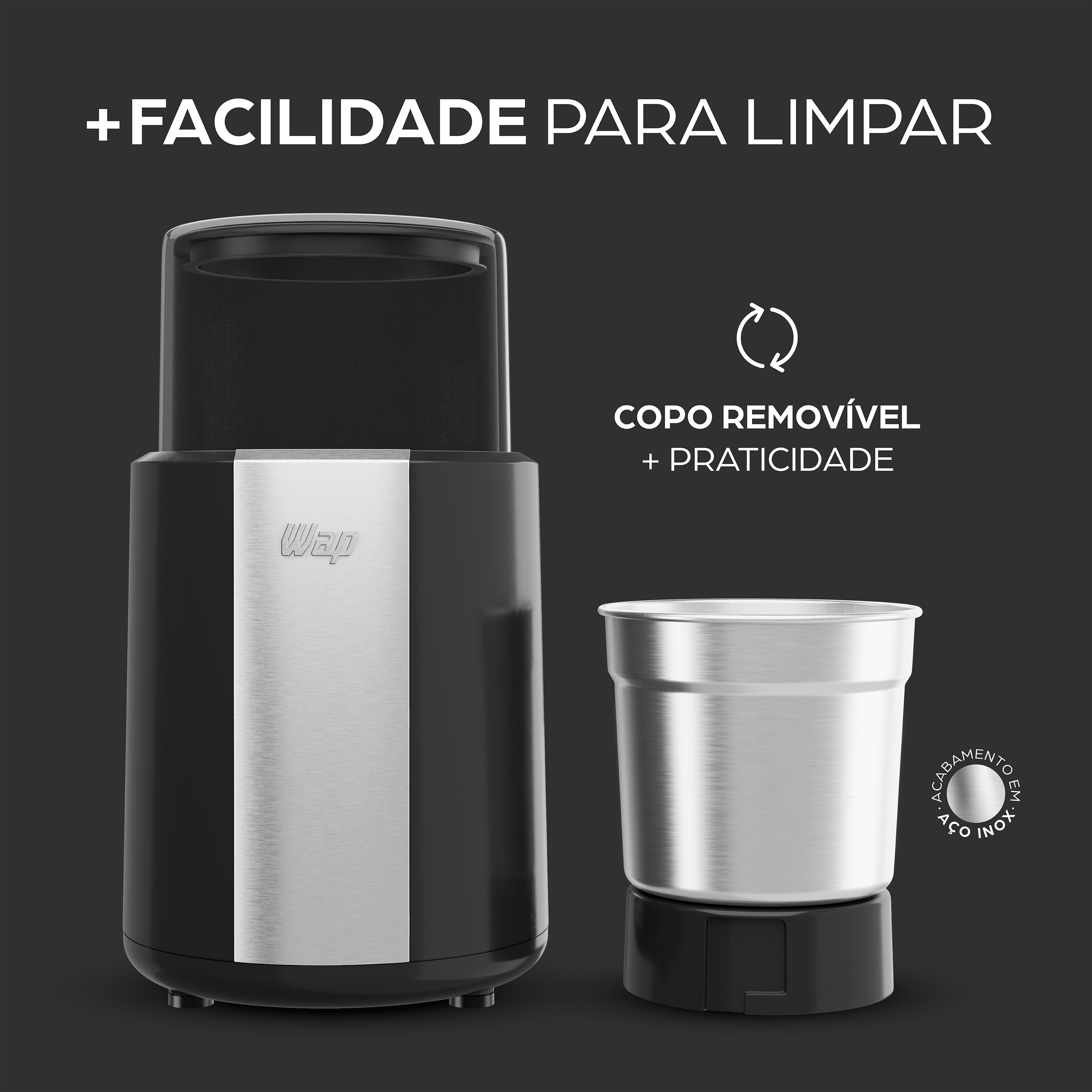WAP Moedor de Café WAP AROMA WMC200 Com Duas Lâminas em Inox, Copo Removível E 200W de Potência 220V
