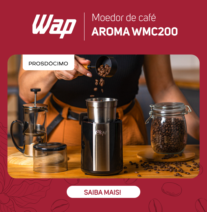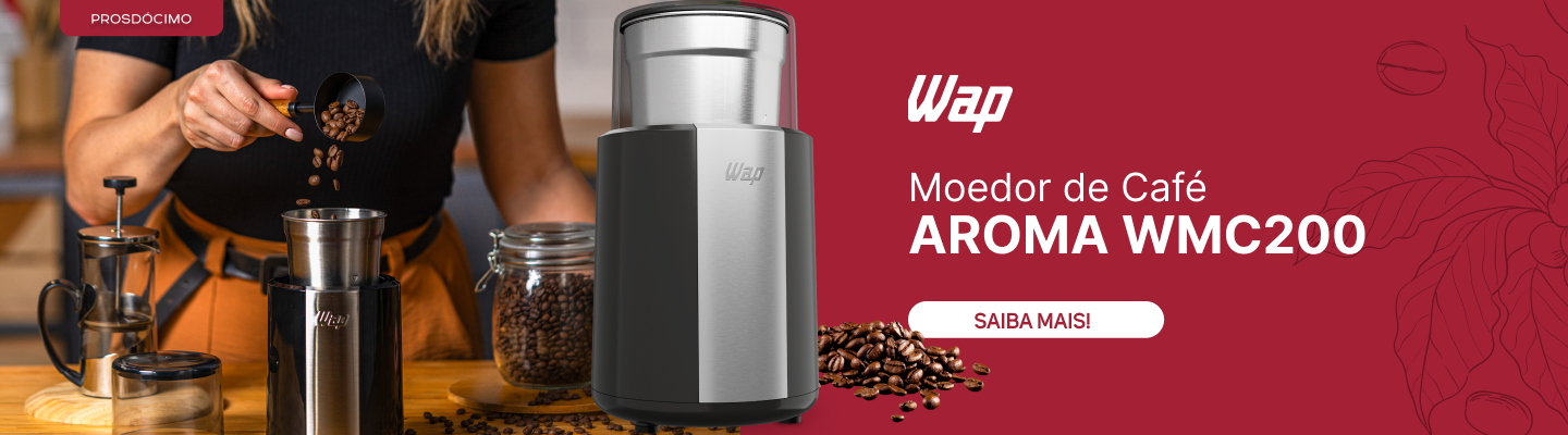 O segredo de um café saboroso, sempre à mão, é o WAP Moedor de Café Aroma WMC200. Transforme a hora da refeição em experiências aromáticas únicas, provando até 90g de café fresco, moído na hora, com a granulagem ideal para o seu gosto.